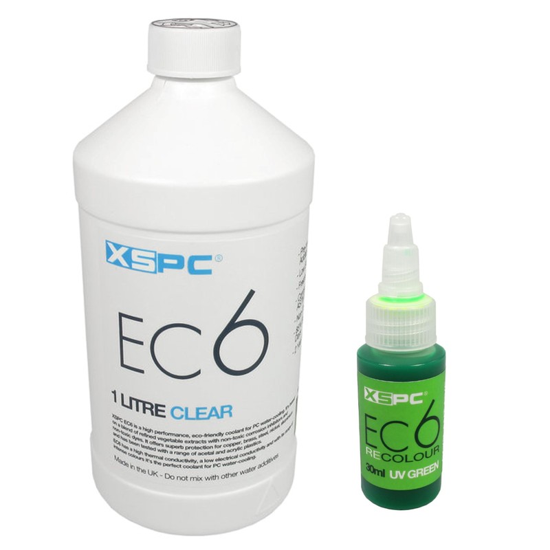 XSPC EC6 Clear Premix PC Coolant (1000mL) and ReColour Dye (30mL) Bundle, UV Green