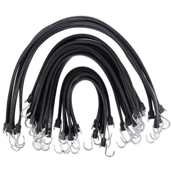 XSTRAP STANDARD Multiple Size Natural Rubber Tarp Bungee Straps Tie Down Cords with S Hooks Heavy Duty Ideal for Securing Tarps - 20 Pack