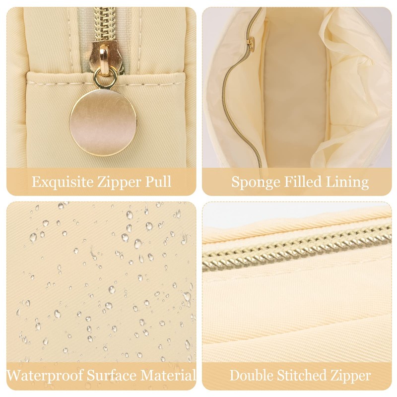 - đăExcellent QualityăThe makeup bag is made of high-quality nylon waterproof material, with a luxurious golden zipper bag, which is durable and reusable. The inner sponge layer prevents the bag from getting wet, easily protecting your personal items.