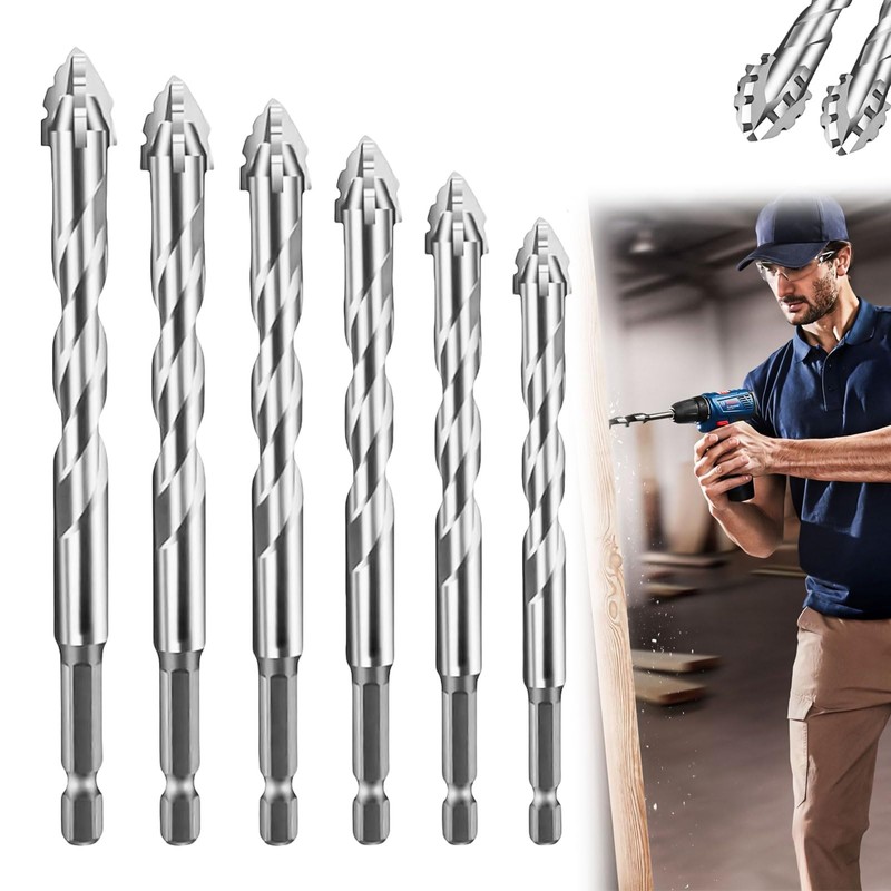 Xsybegdlk Eccentric Drill Set, 6-Piece Four-Edged Sawtooth Eccentric Drill Bit, High-Strength Eccentric Drill Bit Sets 4/5/6/8/10/12 mm High Strength Eccentric Drill Bit with 4 Cutting Edges for