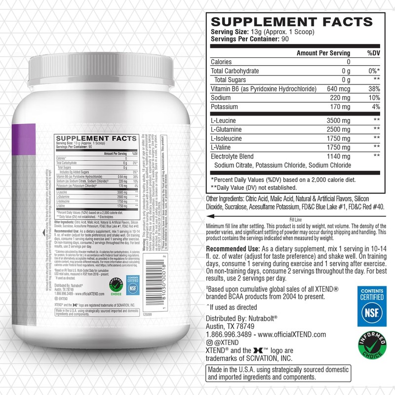 - SUGAR-FREE BRANCHED CHAIN AMINO ACIDS - Zero sugar in every delicious serving. XTEND post workout drink mix helps support muscle recovery and growth.