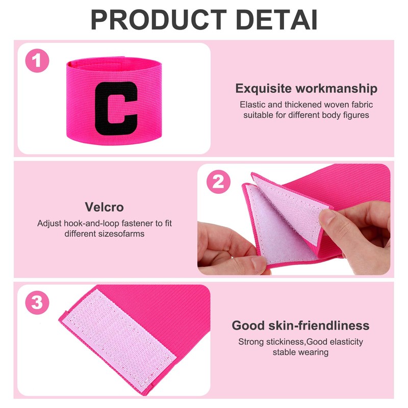 Xthrotsenk Pack of 4 Captain's Armband Captain Play Football Armband Adjustable Captain Bind Basketball Player Elastic Captain Bracelets for Many Sports Training, Pink