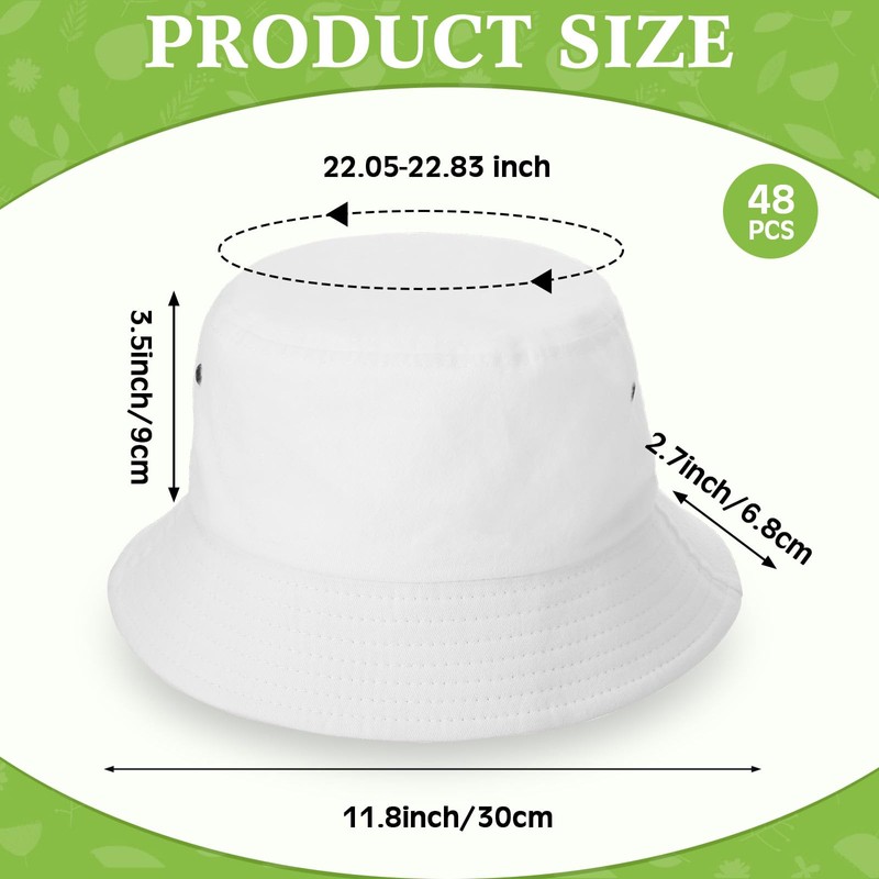 - Bulk Pack for Events and Everyday Use: Includes 48 unisex white cotton bucket hats, ideal for large group events, school trips, family reunions, team activities, or giveaways. Designed with ventilation holes and an inner sweatband for breathable, sweat-wicking comfort in warm weather.