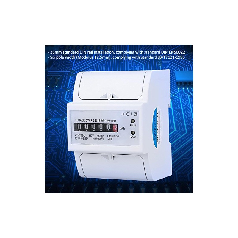 - Model: XTM75S-U DIN rail electricity meter. It has 6 pin widths (module 12.5 mm) and meets JB / T7121-1993 standards. Can display 5 + 1 LCD digits (99999.1kWh).