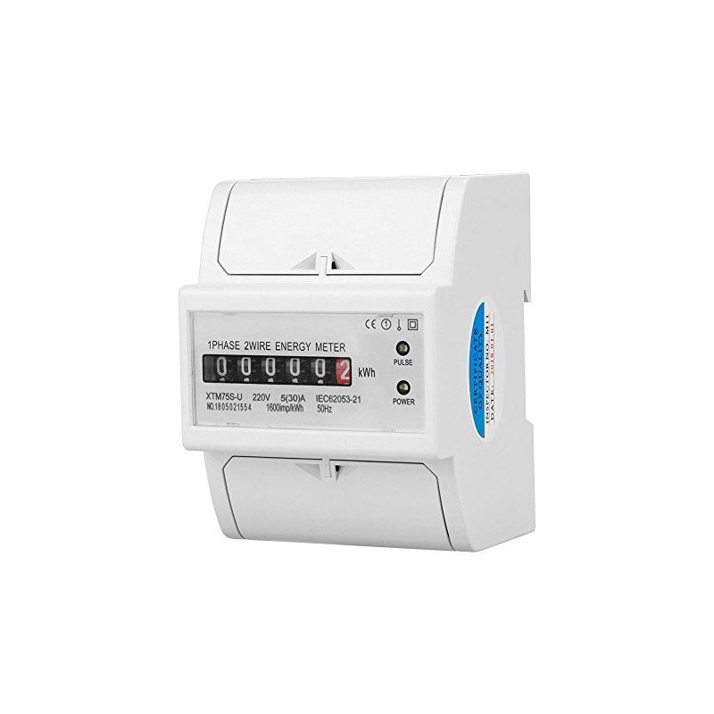 - Model: XTM75S-U DIN rail electricity meter. It has 6 pin widths (module 12.5 mm) and meets JB / T7121-1993 standards. Can display 5 + 1 LCD digits (99999.1kWh).