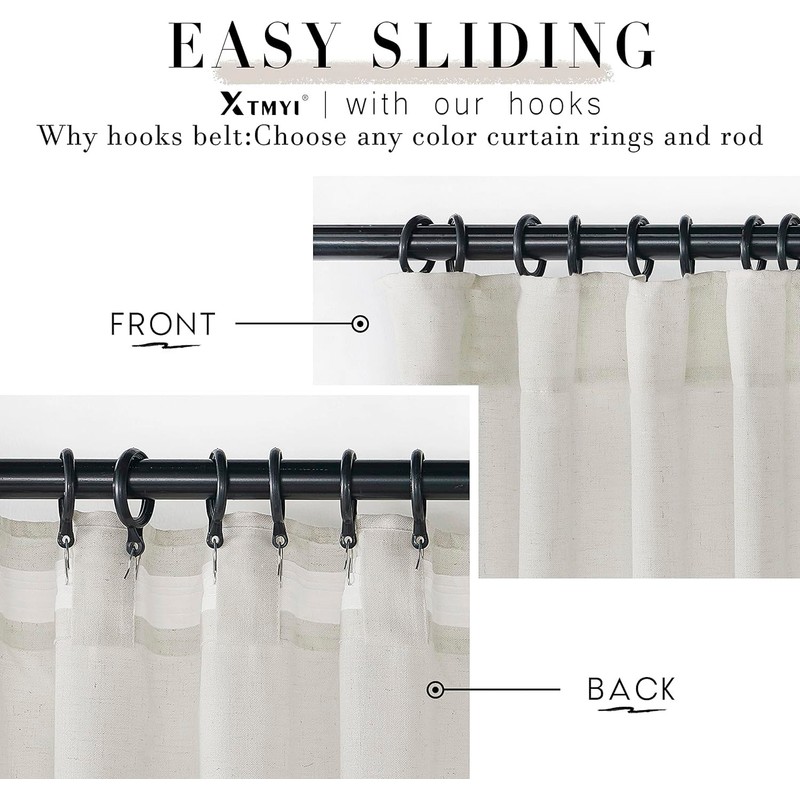 - - Hanging Methods:Method 1(Most conveniently easy to slide),use our 32 hooks in the package to pin on fabric tape on the back of curtain (as the product image shows) and pin on your own curtain rings. Method 2,use back tab to hide the curtain rod. Method 3,rod pocket.Method 4,use your own clip rings.
