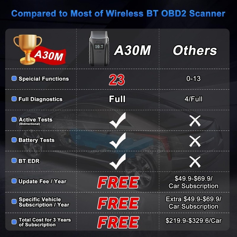 XTOOL A30M BT Bluetooth OBD2 Scanner Bi-Directional Diagnostic Tool >>>XTOOL Anyscan A30M Wireless OBD2 scan tool covers many capabilities that are only available in advanced diagnostic tools with a low budget.☑️New Add CAN FD Protocol✅Bi-Directional Control✅23 Maintenance Functions✅OE-Level All Systems Diagnostics✅85+ Brand Vehicle Coverage✅BT Wireless Connection✅Lifetime Free Software Download✅Flashlight Mode
