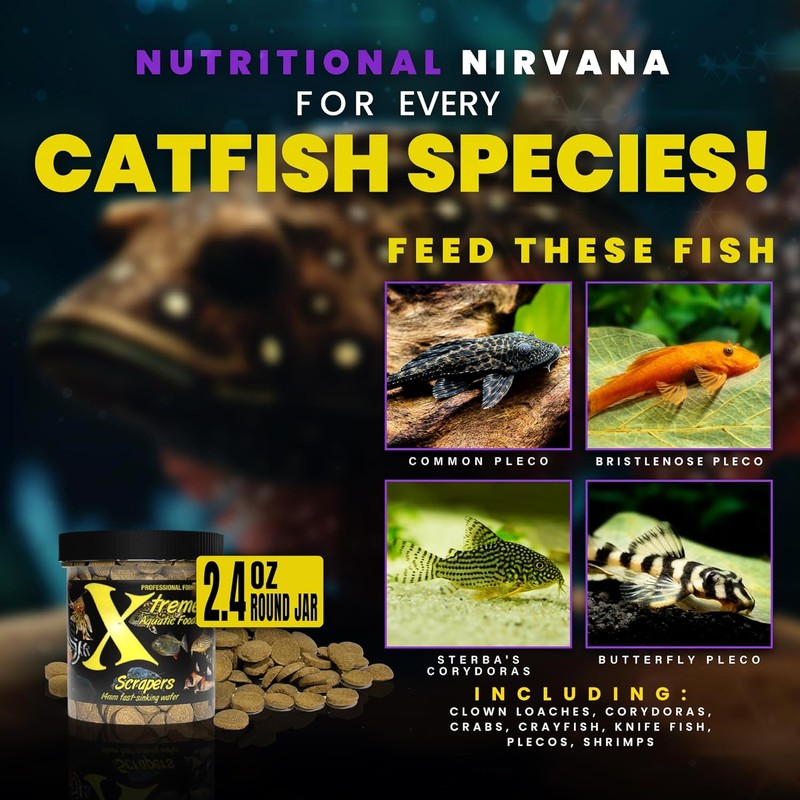 Xtreme Scrapers Wafers - Premium 14mm Fast-Sinking Fish Food – Nutrient & Cellulose Rich Ideal for Nocturnal Feeders, Catfish, Plecostomus Species, and Loaches – USA Farm Grown (2oz)