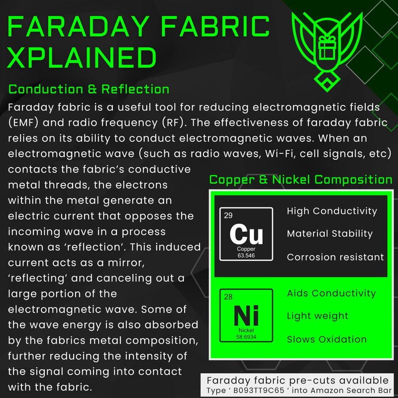 - ❇️ Signal blocking main compartment is lined with multiple layers of Diamond Form Faraday fabric, creating an impenetrable barrier against RF and EMF (Get more info & buy Faraday fabric pre-cuts: Copy ASIN B093TT9C65 to Amazon search )