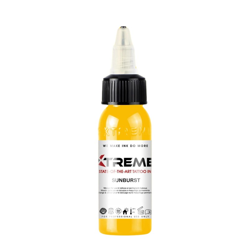 Xtreme Tattoo Ink, Versatile Medium Viscosity for Precision Tattooing, Rich Hue, Quick Healing, Acrylic-Free, Water Based and Premium Quality - Ready-to-Use Tattoo Ink (Sunburst, 1 oz)