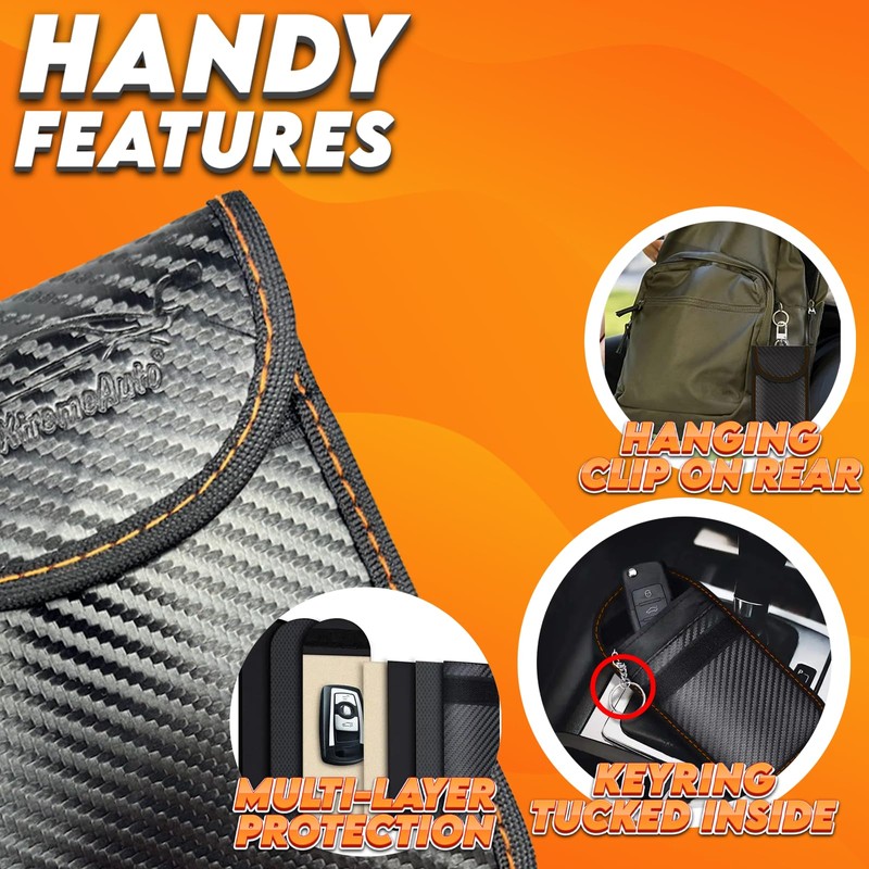 - STYLISH AND DURABLE DESIGN - The embossed Xtremeauto logo and stylish orange stitching make these signal blocker pouches not only functional but also fashionable. Constructed with quality materials, they are built to last and protect your car keys for years.