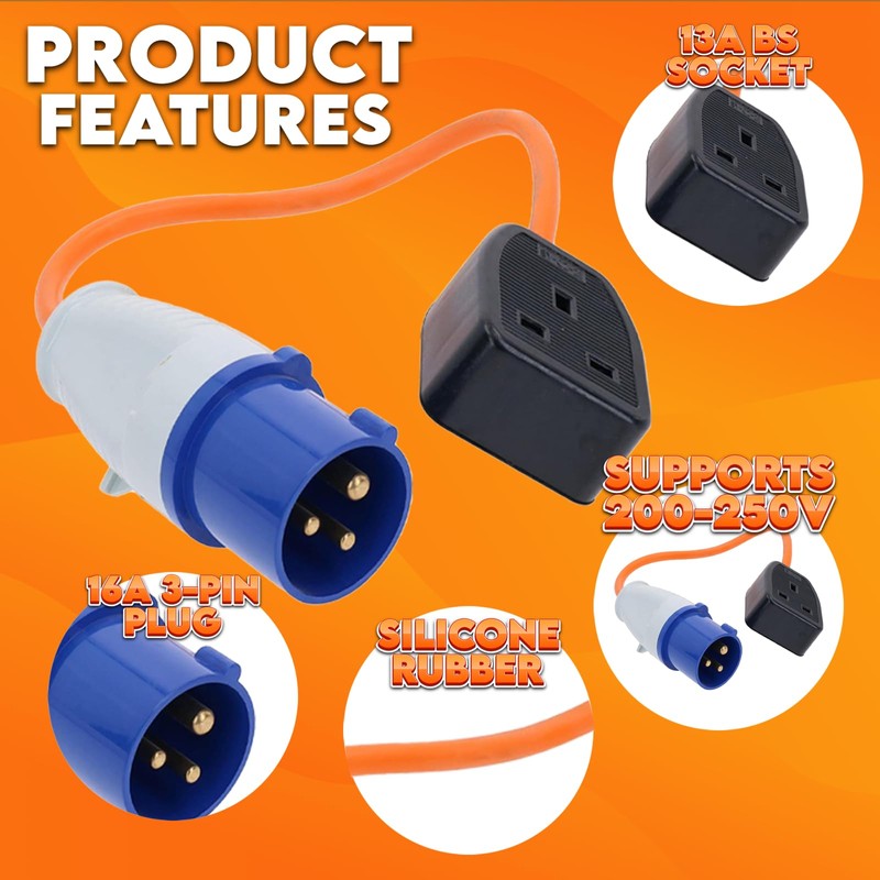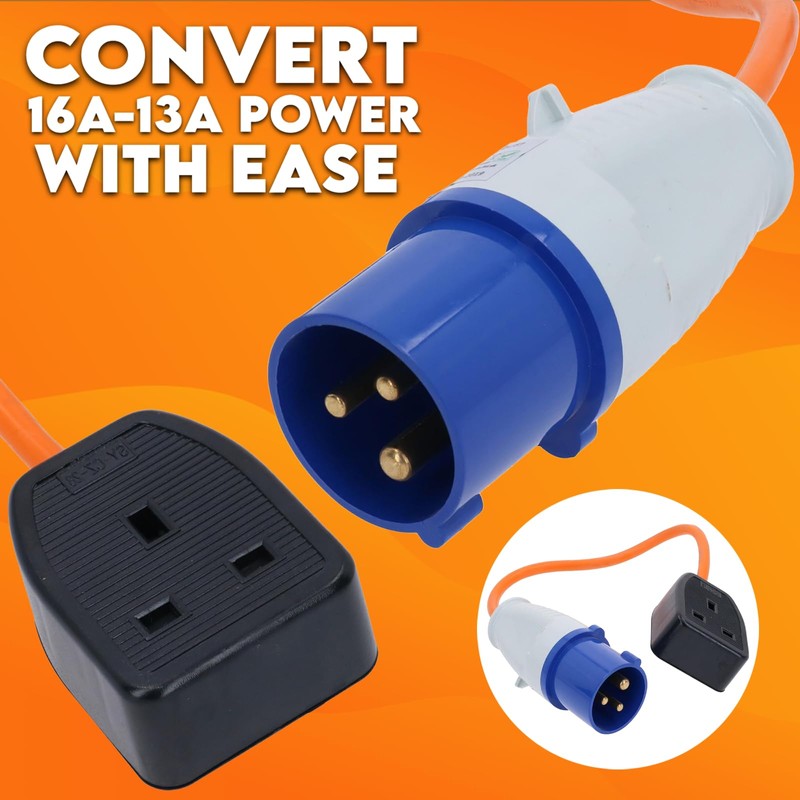 - VERSATILE POWER SOLUTION - The Xtremeauto 16amp To 13amp Adapter is your go-to extension for bridging the gap between 16 amp and 13 amp power sources. With a 21cm cable length, it's the ideal choice for generators, caravans, campervans, and motorhomes. This adapter allows you to convert your 16 amp socket to a 13 amp plug effortlessly, making it perfect for all your camping and caravan adventures.