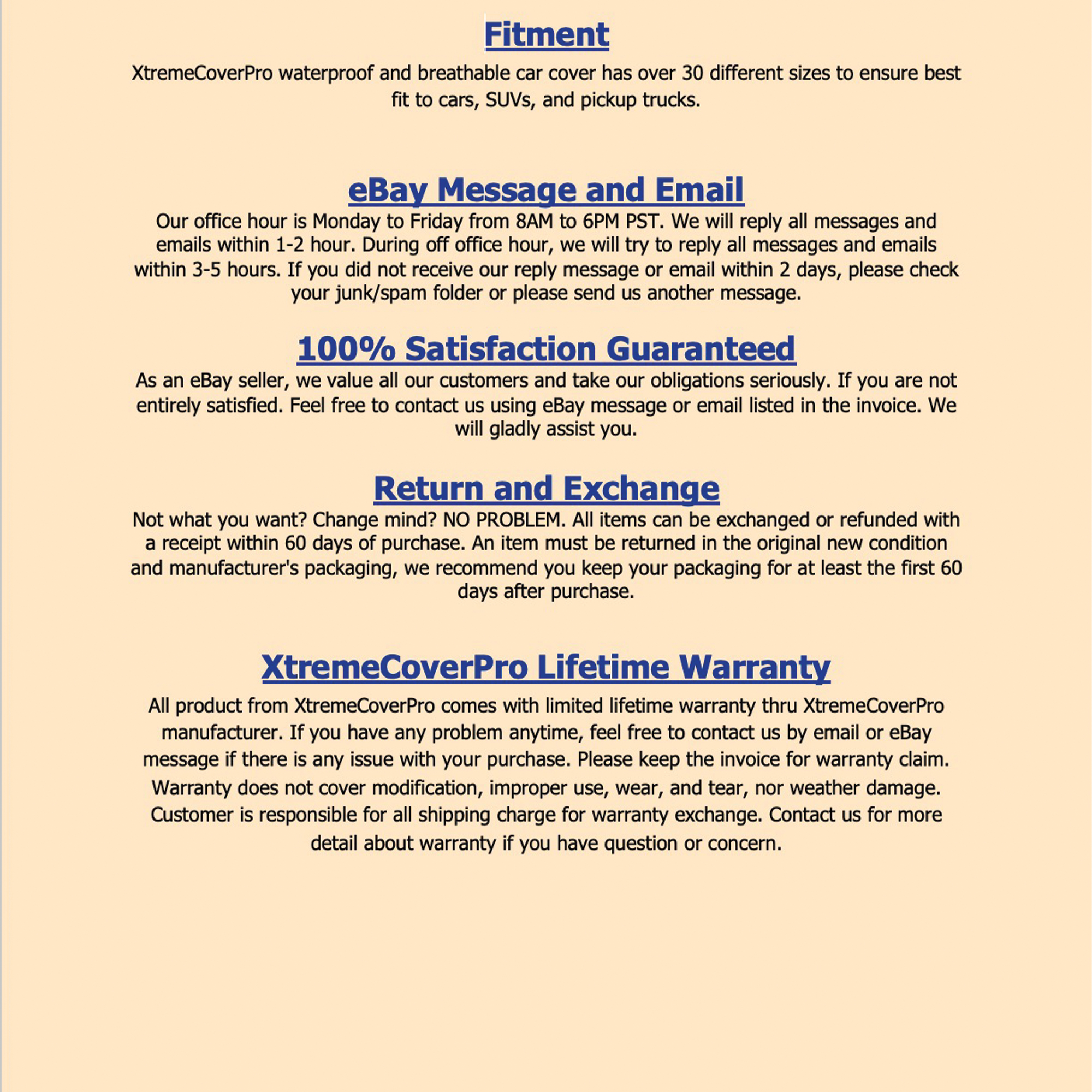 Please read our policy carefully before making a purchase.