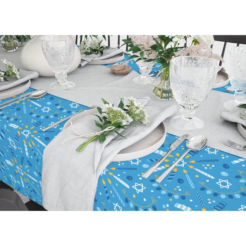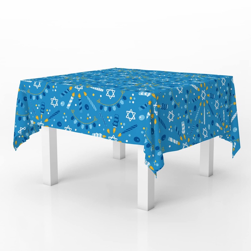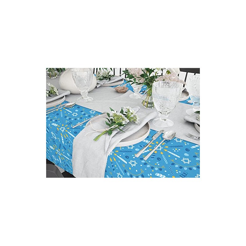 Xtremepads Hanukkah Garlands Dreidel Pattern Pattern - Rectangle Oblong Linen Tablecloth, 60" x 102" inches Washable Decorative Table Cloth
