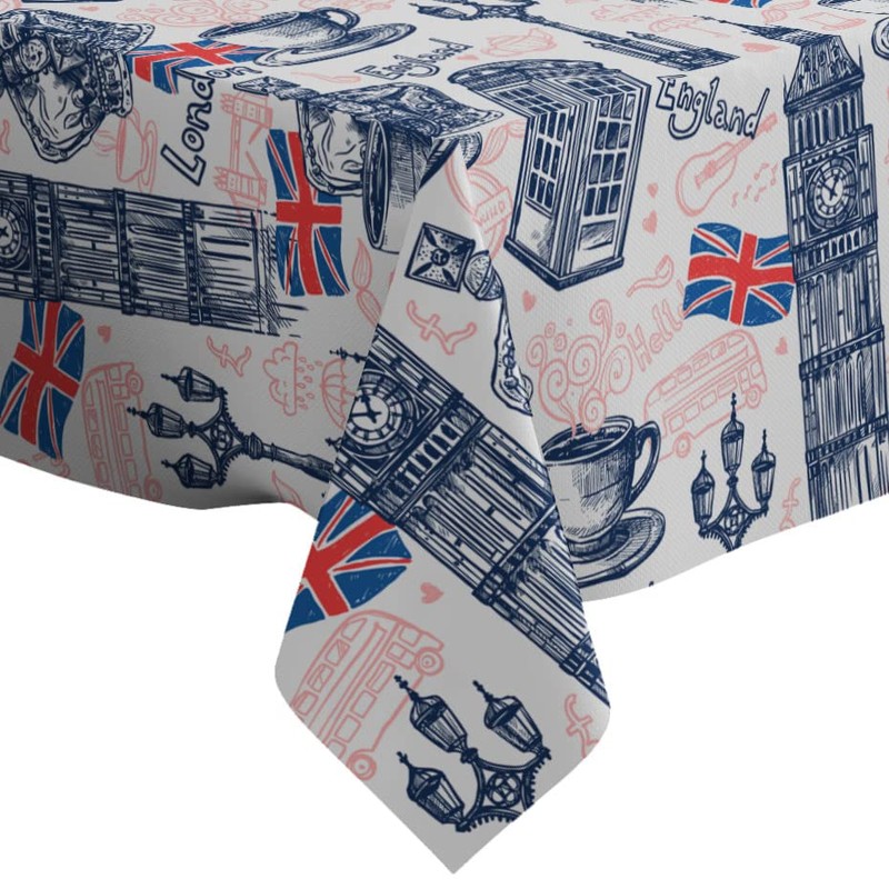 Xtremepads London Sketch Telephone Pattern Pattern - Rectangle Oblong Linen Tablecloth, 60" x 84" inches Washable Decorative Table Cloth