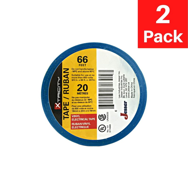 - Item Specifications: Vinyl blue electric tape is professional grade; 3/4” x 66 ft x .007in; suitable up to 600 volts, 14°F - 176°F