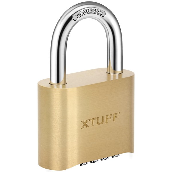XTUFF Combination Lock-4 Digit Bottom Resettable Outdoor Brass Padlock Waterproof, Solid Wide Body, for School Gym Employee Sports Locker, Fence, Gate, Case, Hasp Storage, Suitcases, Keyless. (1)