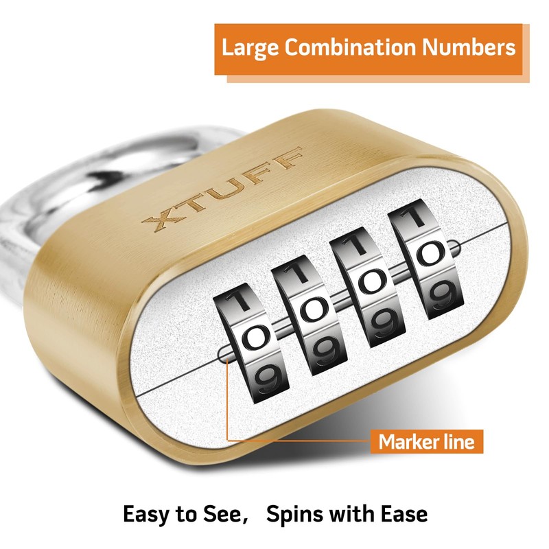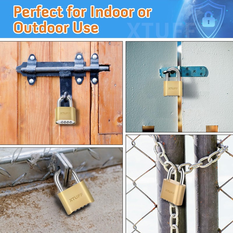 - 【Versatile】 The durable well made heavy duty rock solid brass combination padlock is designed to withstand elements and stand up to the weather and is intended for indoor and outdoor usage such as school gym or athletic lockers, cabinets,hasp storage units, fence gates, garden sheds,garage doors,backpacks, tool boxes, etc