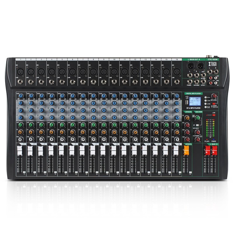 XTUGA 160CT 16 Channel Mixer for PC Recording Sound Controller Audio Interface with Digital Effect Studio Mixer with 48V Phantom Power RCA Input XLR