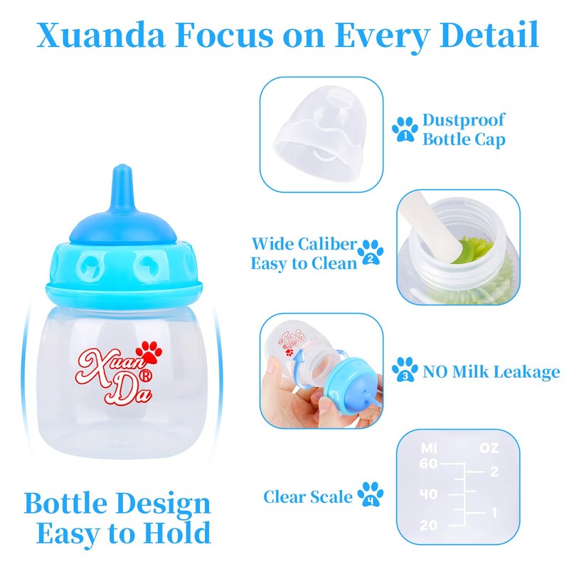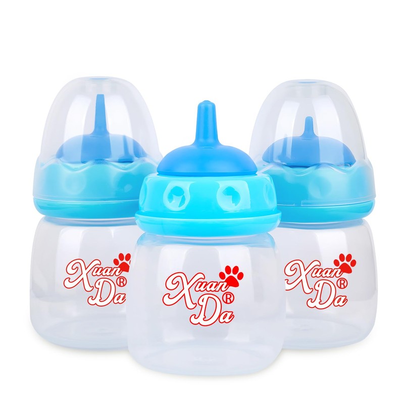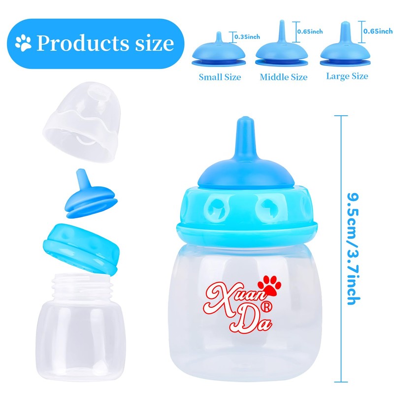 Xuanda Pet Feeding Bottle,3 Pack 60ml Nursing Bottle, 3 Sizes Nipples with Ventilation Valve Resistant Tearing Perfect for Puppies, Kittens, Small Wildlife(Blue)
