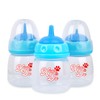 - Package: Our nursing bottle gift set contains 3 pcs bottles (60ml/2oz), 3 pcs Small/Middle/Large size blue color nipple with intelligent pressure regulating valve, 3pcs bottle dust cover, to meet the different newborn daily feeding needs.