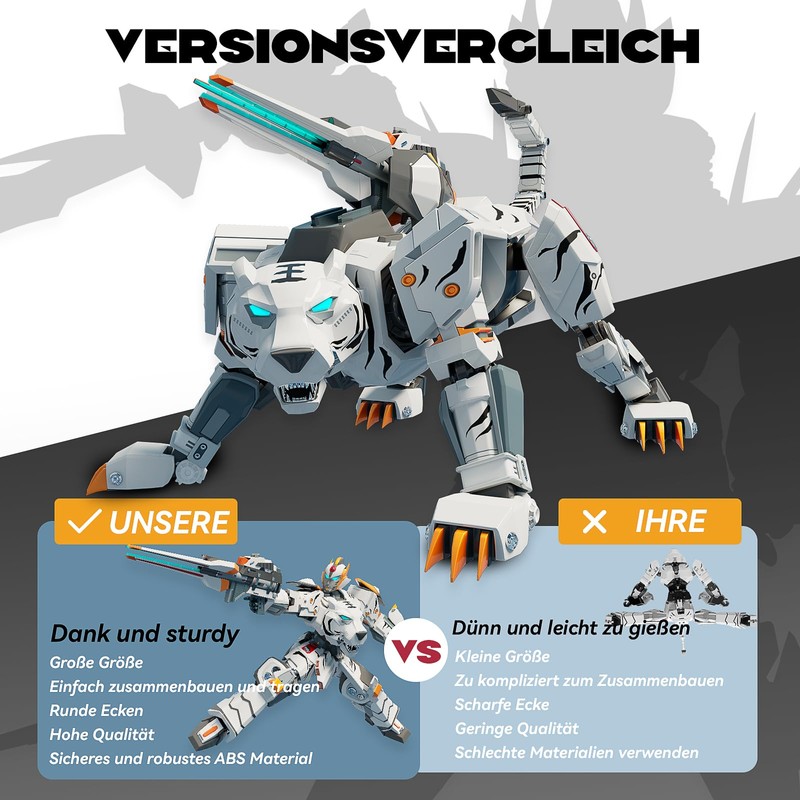 XUEXUE 10 Inch Tiger Robot Toy for Kids - Animal Deformation Assembly Robot for Boys & Girls Ages 6-12 Inches (White)