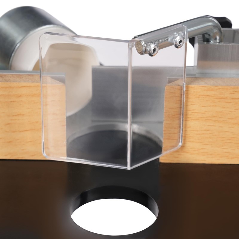 - 📌【 Thoughtful Design 】A clear shade can be used to block splattered wood chips, and a dust collection port makes it easy to clean up debris to keep your work area clean.