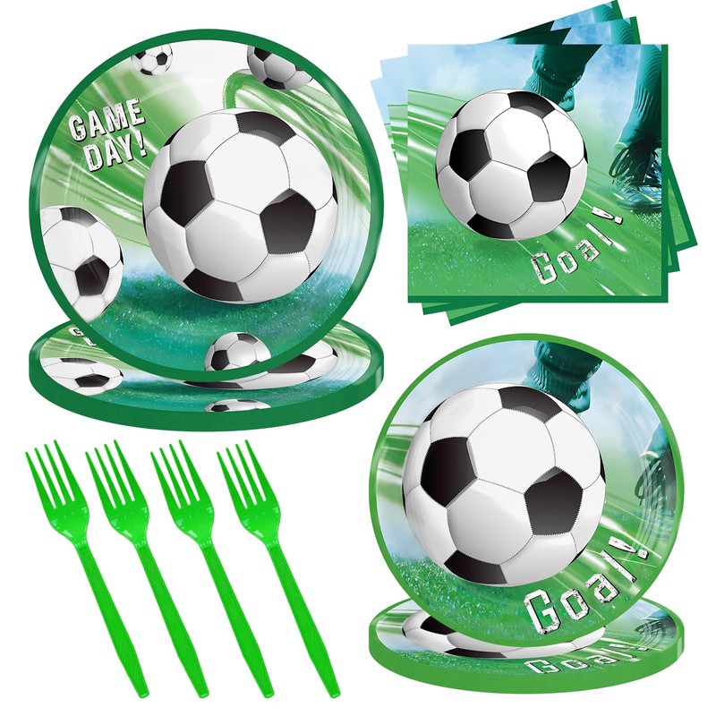 Xugoox Soccer Party Decorations Soccer Theme Tableware Set Including Soccer Plates Napkins Forks for Boys Sports Theme Birthday Supplies, Serves 20