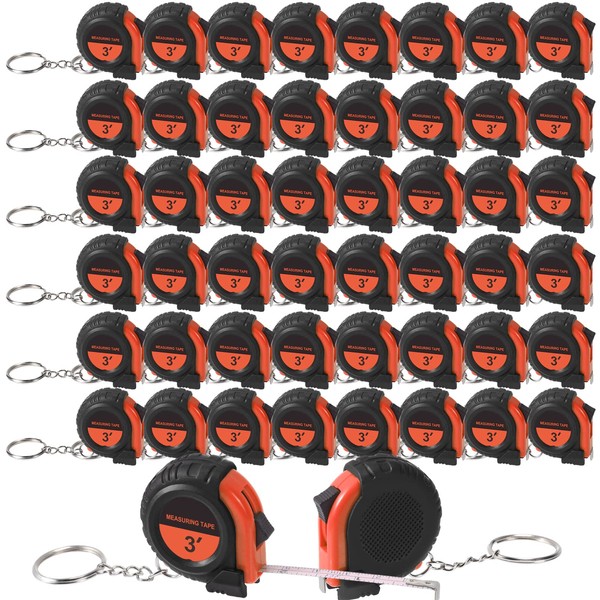 Xuhal 50 Pcs Mini Measuring Tape Keychains Small Measuring Tape Bulk Set 3ft Retractable Measuring Tape Measurement Tape with Pause Buttons for Engineer Crafter, Autowind and Lock (Orange)