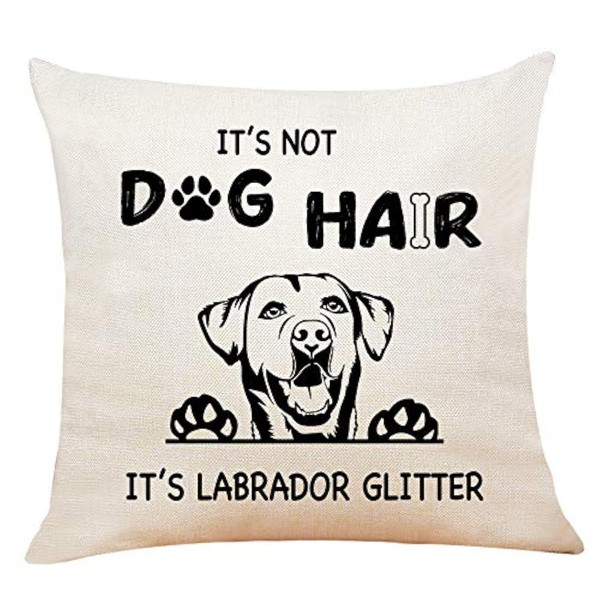 XUISWELL Black Yellow Labrador Retriever Lab Gifts, Funny Quote It’s Not Dog Hair It’s Labrador Glitter Lab Panting Cotton Linen Throw Pillow Cover, Cushion Case for Sofa Bed Home Decor 18 x 18 Inch