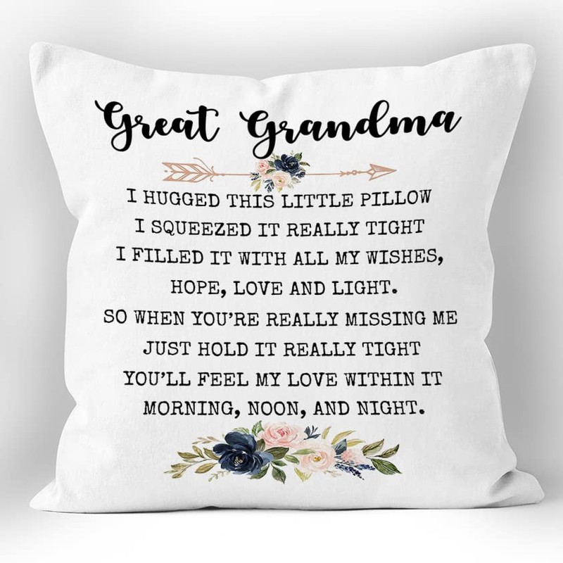 XUISWELL Great Grandma I Hugged This Little Pillow Floral Throw Pillow Cover,Birthday Christmas Mother’s Day Thanksgiving Gifts for Grandma,Cushion Case for Sofa Bed Home Decor 18 x 18 Inch