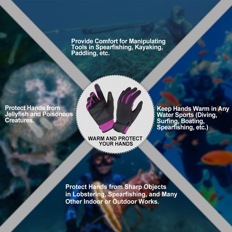 - Warm and protect hands-The 1.5mm thickness of neoprene gives these wetsuit gloves good warmth and durability, continuously keep your hands warm in water sports and provide perfect protection, keeping your hands from any dangerous objects or creatures's damage.