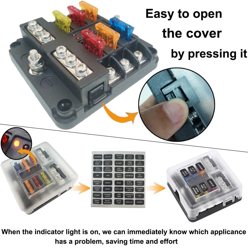 Xukey 12V/24V 6-Way Car Marine Blade Fuse Holder Box Block with LED Indicator...