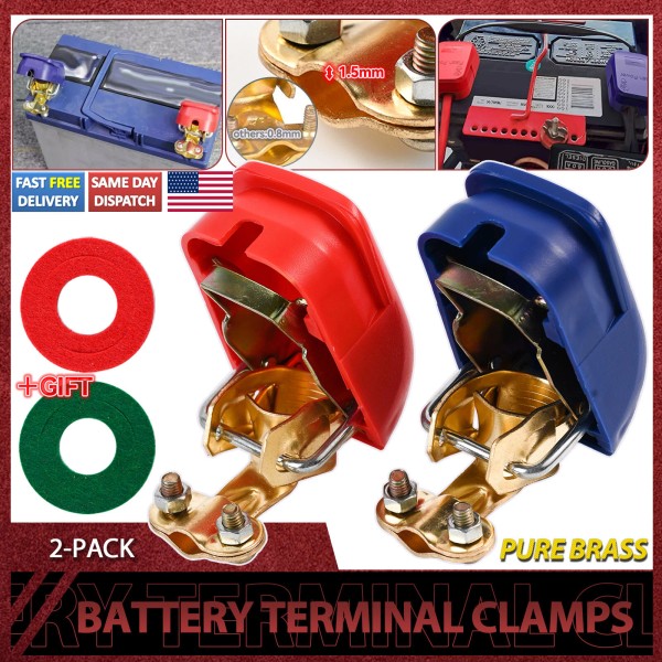 - Quick Release Design - Attach to battery terminals by clamping down and Lift caps to remove from battery terminals.
