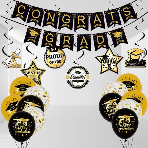 Xunerloy Graduation Decoration, Graduation Party Decoration 2025, Black Gold Graduation Decoration, Graduation Decorations Photo Props