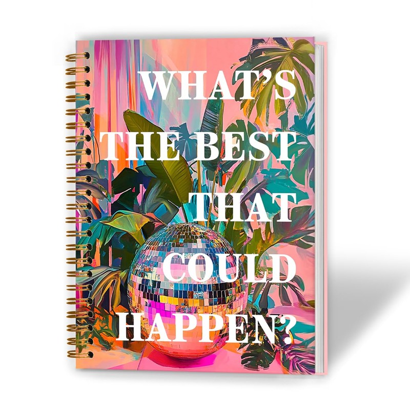 XUNLURY What's the Best That Could Happen Inspirational Notebook, Positive Quote Journal for Women, Anti Anxiety Journal, Groovy Disco Ball Hardcover Spiral Notebook, 5.5x8.3 Inch