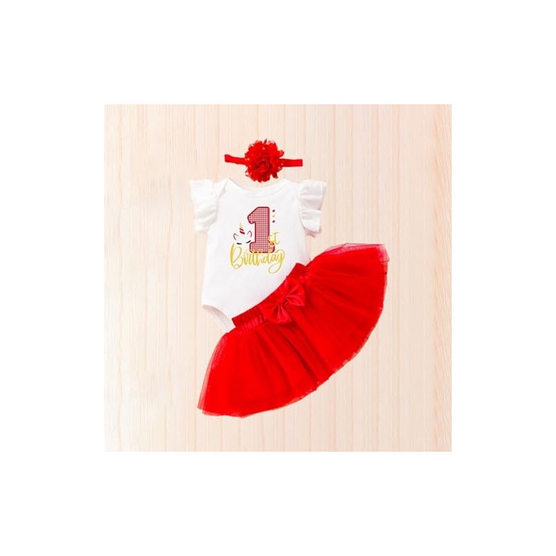 xuntao Baby Girl 1st Birthday Outfit Dress Long Sleeve Bodysuit Romper Princess Tutu Tulle Skirt with Headband 3-Piece Photo Shoot Red 1 6-12 Months, red