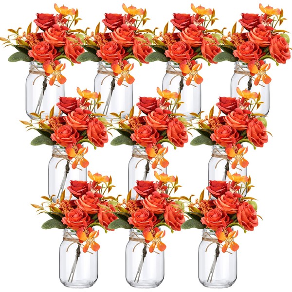 XunYee 10 Set Fall Thanksgiving Table Centerpiece Decor with Flower Mason Jar Flower Centerpiece Mason Jar Vases Decor for Fall Thanksgiving Party Wedding Reception Home Table Decor