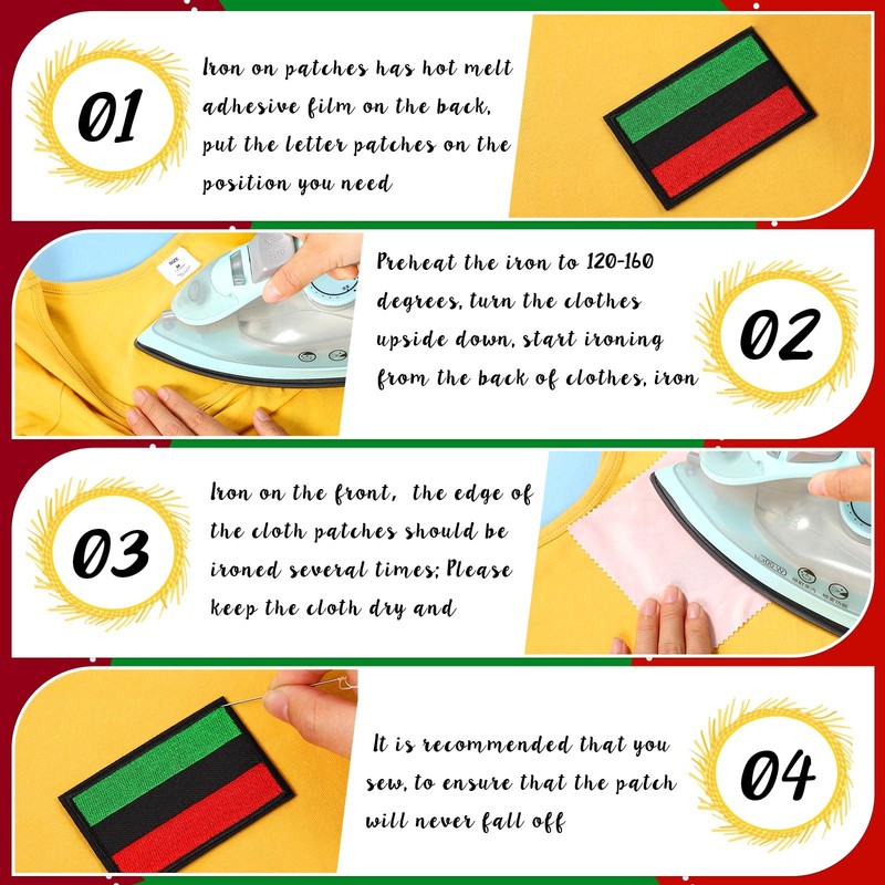 - Simple Operation: the black history patches are easy to use, just put it in place where you want to decorate, then preheat the iron to 120-160 degrees and iron it from the back for 8-15 seconds; Please iron the edges of the fabric several times, keep the fabric dry and control the preheating temperature