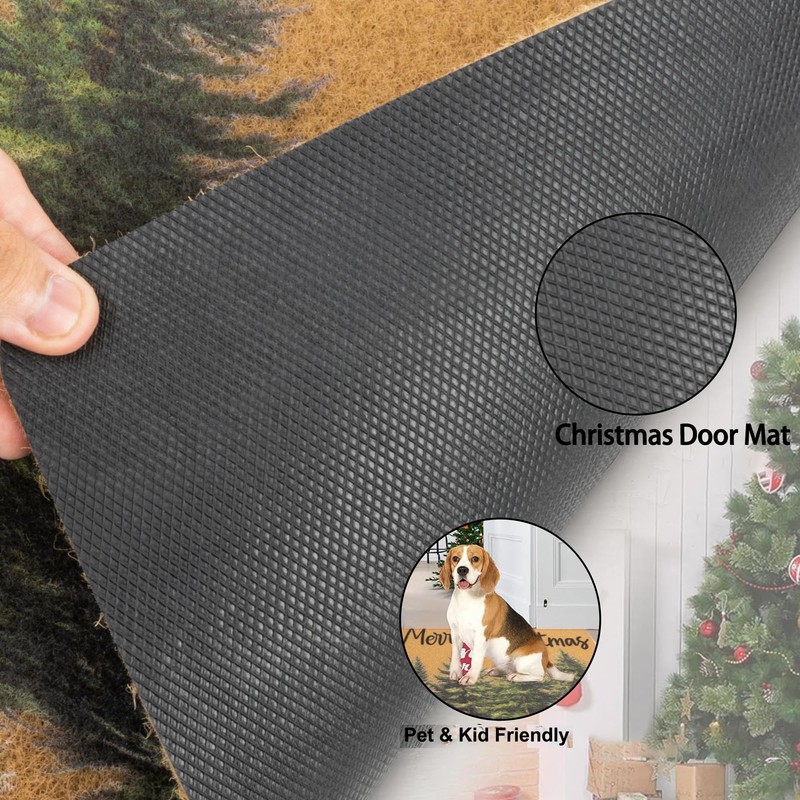 - Christmas Holiday Design:Cute Christmas theme adds pine trees and "Merry Christmas" which is attractive and adorable. Make a merry first for front door on Xmas holiday and winter season,give your guests a warm welcome with our Christmas door mat