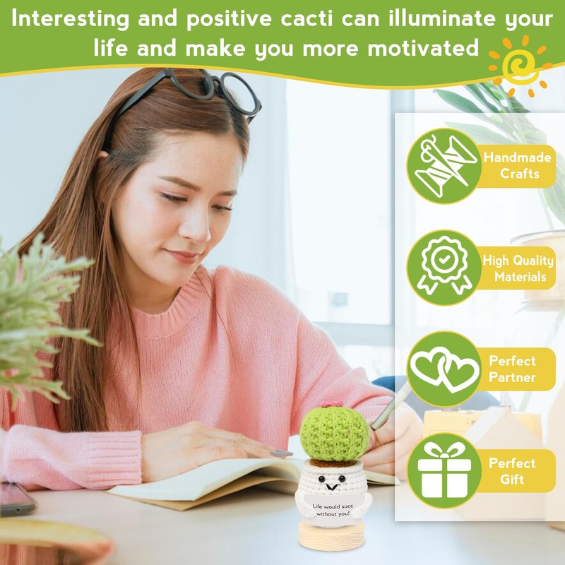 Xutanoiy Positive Cactus Mini Funny Knitted Wool Toy with Positive Card Birthday Gifts for Women Men Mom Dad Friend Gifts for Anniversary Mothers Day Support Crochet Doll Room Decors (Cactus)