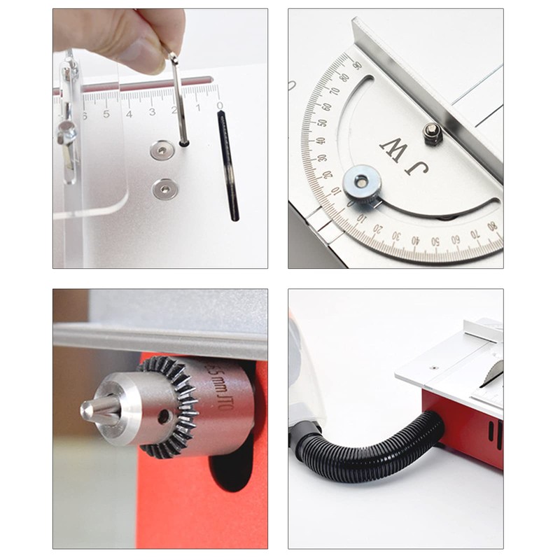 Our mini table saw is Compact and portable, precision design, durable. Fully enclosed metal shell, with dust pipe, no longer worry about dust. Seven speed regulating power supply 96w, for DIY manual model / PCB cutting / small plastic metal cutting.