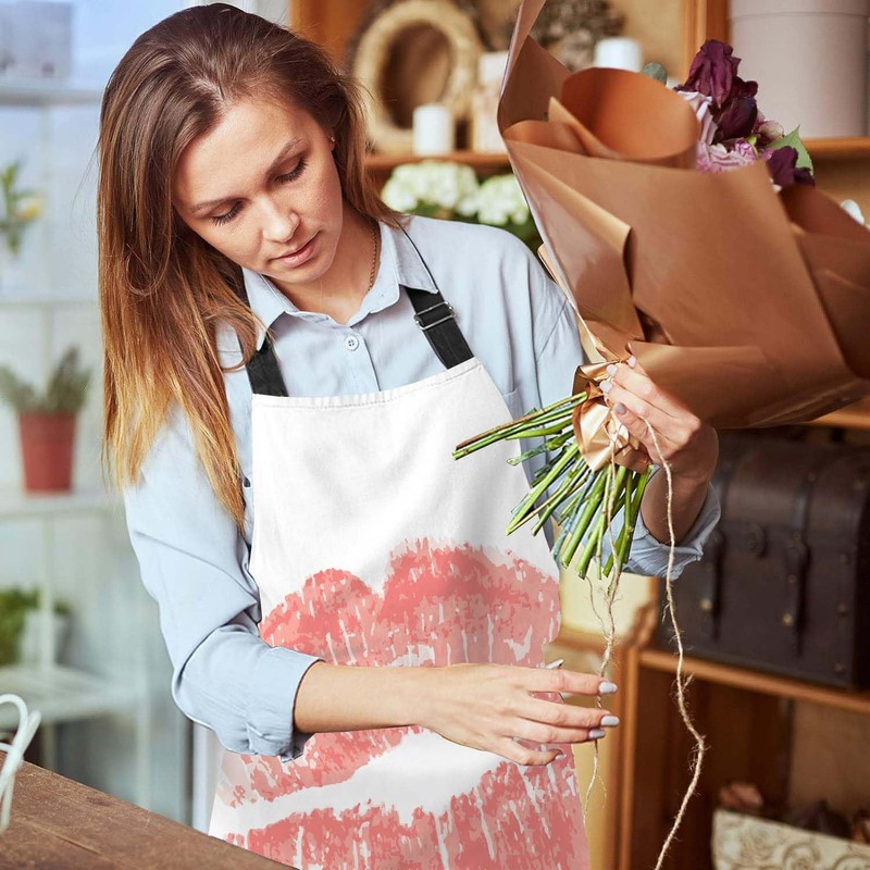 Xuwenz Pink Lips Waterproof Apron Kitchen Chef Aprons Bibs for Grooming Cooking Baking Painting Gardening