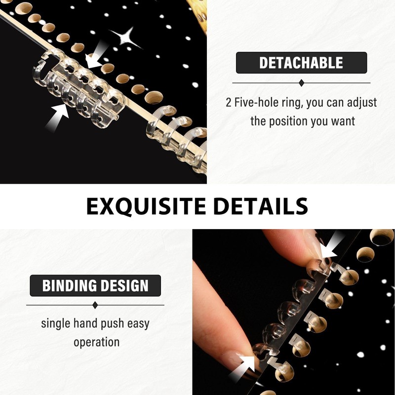 • Removable Spiral Design: The side ring is pressed to open, which can be easily operated with one hand, and can be disassembled and adjusted at will. The number of pages can be increased or decreased at any time.