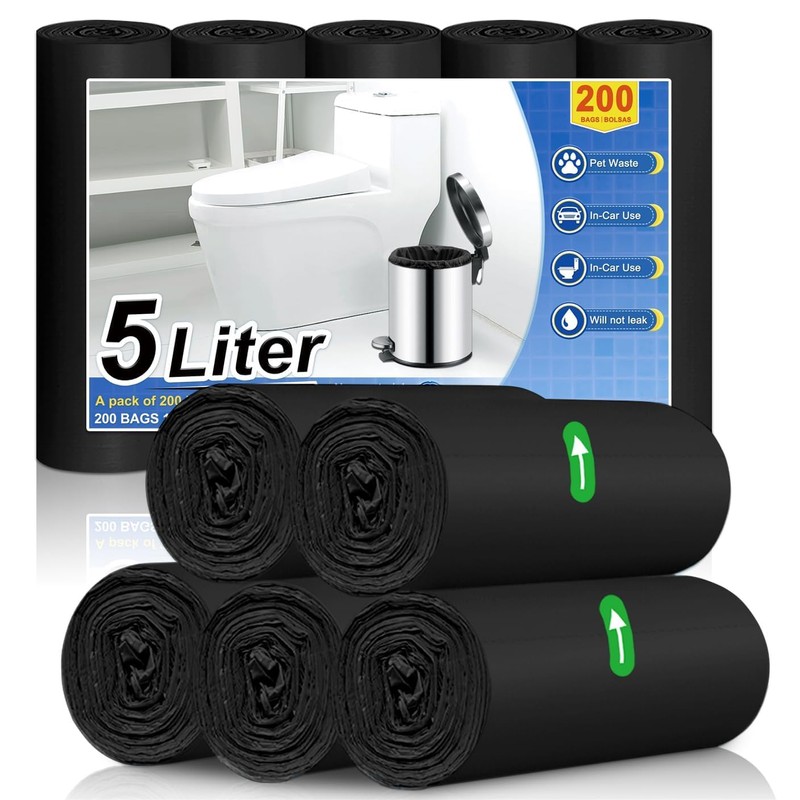 XUXRUS 5 L Bin Liners, Black, Small Bin Liners, Suitable for Bathrooms, Offices, Pack of 200