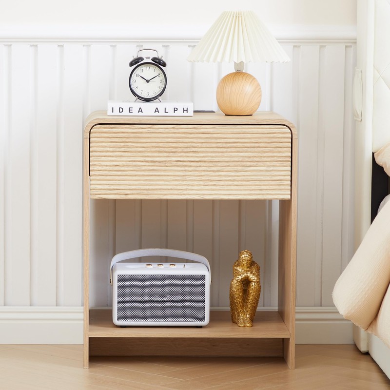 - 【Minimalist & Practical】 Our bed side table boasts a minimalist curve profile and a drawer with a unique waveform panel, perfectly balancing modern aesthetics with functional design. The chic appearance complements various bedroom styles, from contemporary to mid-century modern. The smooth lines and rounded corners make it safe for kids and families, creating a standout piece that elevates the ambiance of your room.