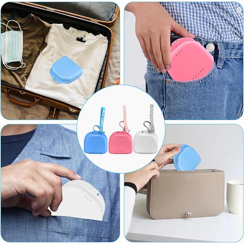 XUZOPIM Pack of 3 Braces Box Dental Splint Box Brace Box with Lanyard Denture Storage for Denture Box Funny Bite Splint