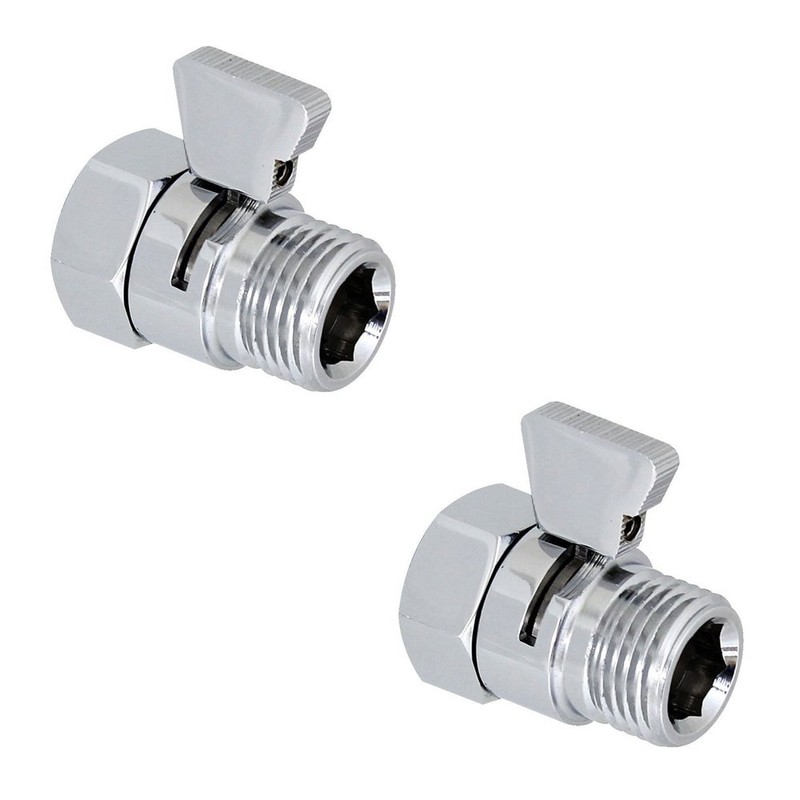 **Description:** -This high quality chrome plated brass shower shut-off valve is installed between the shower arm and the shower head to control the flow of water. -It has a 1/2-inch IPS female connection on one end and a 1/2-inch IPS male connection on the other end. -Ball value, gate value or close stop value can be replaced by shut-off value. \- Simple to install and enjoy your showing **Specifications:** \- Connection: G1/2 \- Body Material : Brass \- Handle Material : Brass -Valve Type : Ceramic Disc Valve \- Finish : Polished Chrome **Package Includes:** -2 x Shower Head Flow Control and Shut OFF Valve
