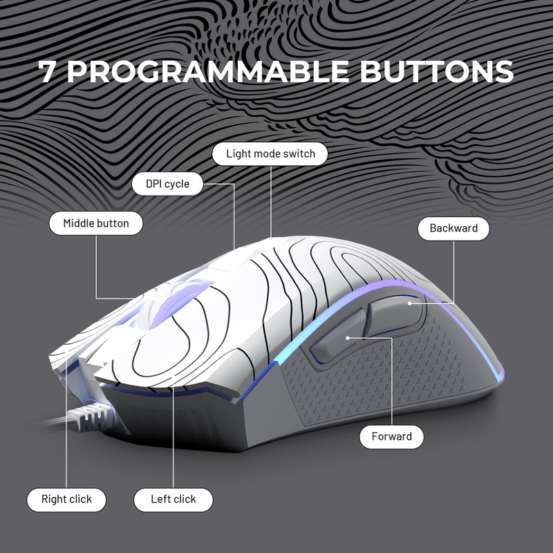 XVX G705 Wired Gaming Mouse, 12000 DPI RGB Gaming Mouse with 12 Backlit Modes & 7 Macro Buttons, PC Gaming Mice Support DIY Keybinding, Mouse Gamer Computer Mouse for Laptop PC Mac Windows,Topographic