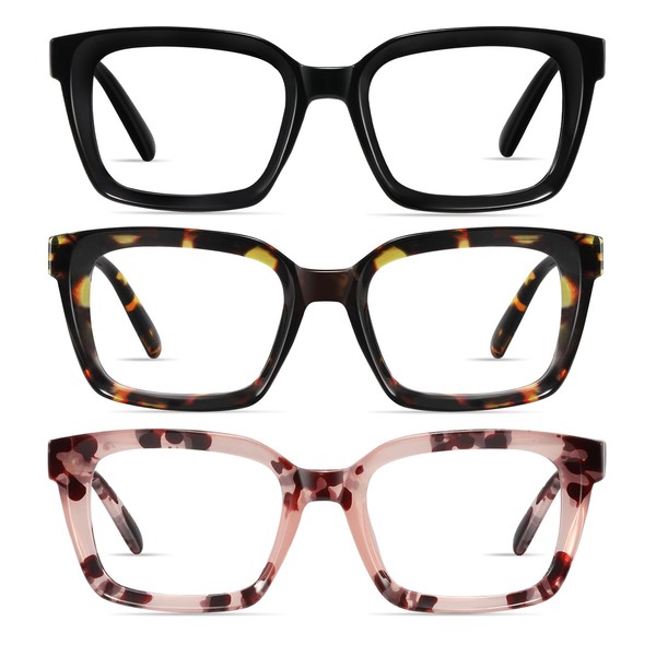 XVXV XVXV Reading Glasses for Women Men - Blue Light Blocking Readers Oversize Oprah Square Anti Glare/Eyestrain Spring Hinge(3 Pack*C1, 2.75)